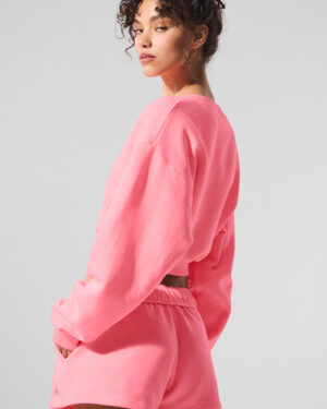 Cropped Accolade Crewneck – Neon Bubblegum