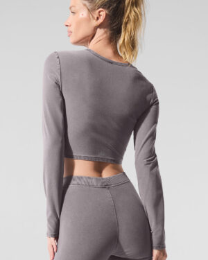 Washed Alosoft Crop Finesse Long Sleeve – Cool Grey Wash