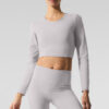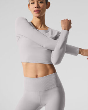 Washed Alosoft Crop Finesse Long Sleeve – Grey Sky Wash