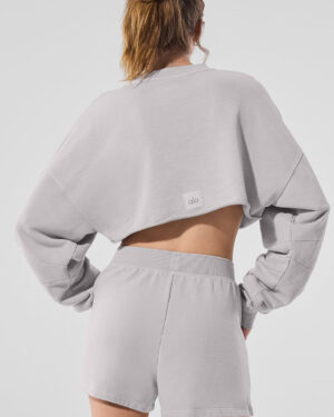 Washed Extreme Cropped Pullover – Grey Sky Wash
