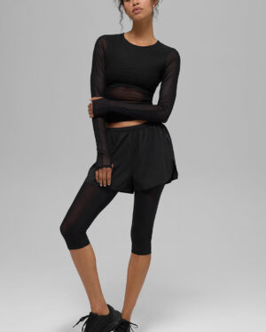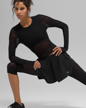 The Winter Twilight Mesh Long Sleeve is the layering piece that works as hard as it looks. This fitted mesh style balances coverage and allure with its sheer finish, thumbhole cutouts, and sleek neckline. Designed with an open back pocket for storing essentials, it??s as functional as it is fashion-forward. Wear it over a sports bra for training or style it solo with cargo pants for a statement look.