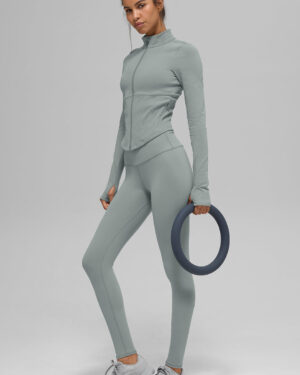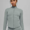 Waist-snatching corset body? Cute curved cut in front? Slim, smoothing fit? Check, check, and check. This jacket does more than flatter the figure, though: It has functional performance features, too, like a full front zipper, thumbholes and hip pockets. Plus, it??s made from Airbrush??an ALO signature fabric that feels like wearing a cottony-soft hug.