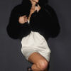 Fun, elegant and seriously chic, this jacket is rendered in lusciously soft, ultra-fluffy faux fur. It has a boxy shape that falls to the waist and a stand collar. If you’d prefer to wear it closed, there are 2 hook-and-eye closures in front. Most importantly, it elevates everything you pair it with, from plain tees to black tie dresses.