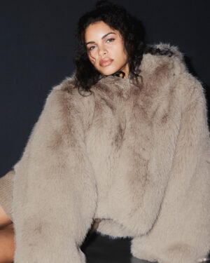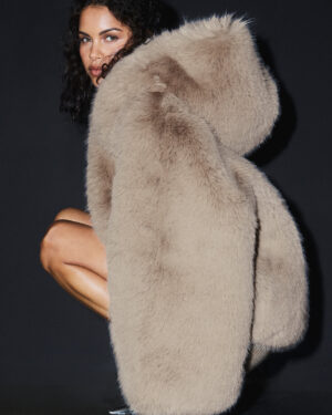 Live your best snow bunny life in the Opulent Statement jacket, made from the softest, fluffiest faux fur you??ve ever felt. It has an oversized hood that slouches perfectly over the shoulders, wide bell sleeves and a hip-length hem. The relaxed fit elegantly hovers around the body, and hook-and-eye closures keep it buttoned up in the front. Wear it for cold weather??or just to look cool.