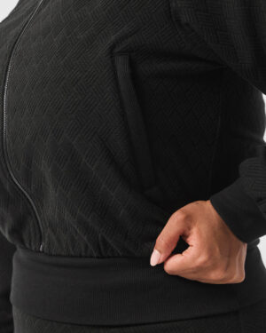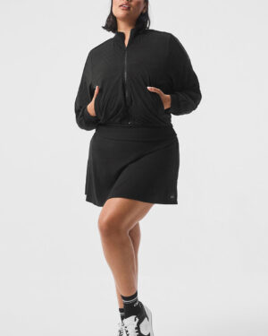 Give retro vibes in the Doubles Only Jacket, designed with a dimensional ribbed finish and a cute stand collar. It has piping down the arms, zippered pockets, and a full-zip front. Plus, the hem is elastic, and designed to hit at the natural waist. Pair it with the matching Bra and Jacket to serve up major style points.