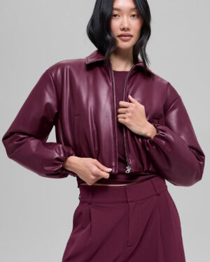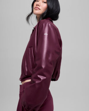 Faux Leather Cropped Premier Bomber – Burgundy