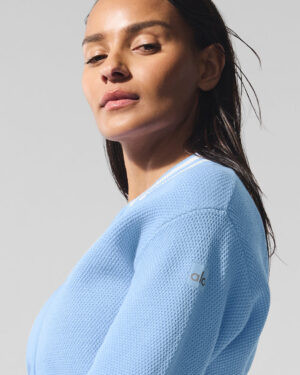 Tennis Club Sweater Knit Full Zip Jacket – Seashell Blue/White