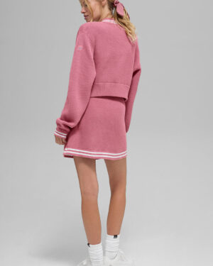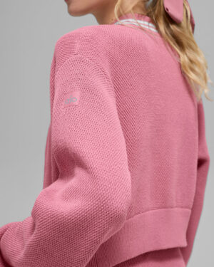 Tennis Club Sweater Knit Full Zip Jacket – Pink Wild Rose/White