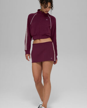 The Track Star Full-Zip Jacket is the piece that instantly sharpens your look. Cut in a cropped silhouette with a high collar and clean full-zip, it??s designed to elongate your frame and highlight your waist. Bold contrast stripes add a pop of energy, while the soft, stretchy fabric moves with you from warm up to wind down. Pair it with the matching Track Star Mini Skirt or layer it with your favorite matching set for a sleek, athletic look.