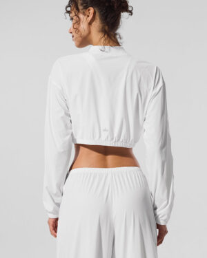 Looking for the perfect jacket for all your between-season looks? The Cropped Breezy Full-Zip is it. This waist-grazing silhouette is made of a lightweight, stretchy material that??s perfect for those days when a light layer is all you need.