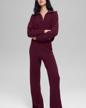 Cashmere High-Waist Plush Waffle Pant – Burgundy