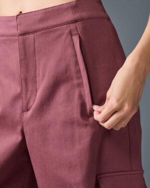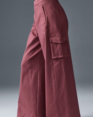 Show Off Cargo Wide Leg Trouser (Long) – Burgundy Truffle