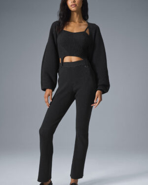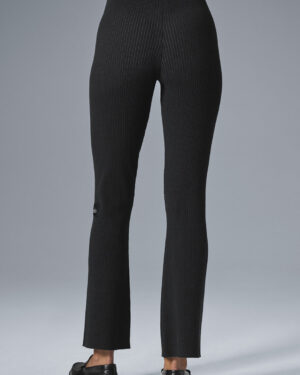 Denim Knit High-Waist Flare Pant – Black/Anthracite