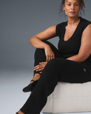 Snuggle Up Sweater High-Waist Wide Leg Pant – Black