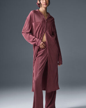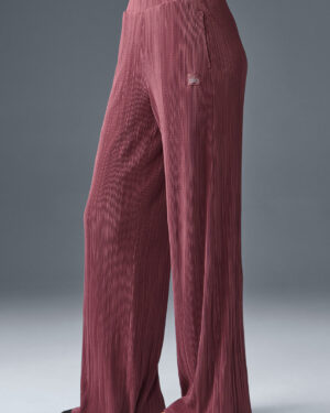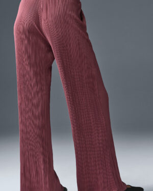 High-Waist Micro Plisse Straight Leg Pant – Burgundy Truffle