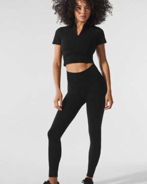 Seamless Winter Warm Plush High-Waist 7/8 Legging – Black