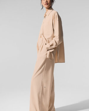 Your wildest trouser dreams just came true. The High-Waist Dreamscape Trouser takes the iconic pleated trouser silhouette to the next level??it??s done in lightweight crinkle woven fabric that breathes, moves, and turns heads wherever you go. Layer over a bodysuit or pair with the matching Dreamscape Button Down Long Sleeve.