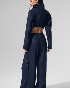 Linen Getaway Cargo Wide Leg Pant – Navy