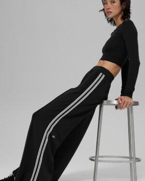 This iconic sporty style is a wardrobe must-have. The Track Star Wide Leg Pant features contrasting stripes that add movement and polish, and a relaxed silhouette that??s perfectly suited for off-duty looks. The elastic waistband and soft, stretchy fabric make them just as wearable for travel days as they are for training. Style it with the Track Star Jacket or a cute crop top to balance out your look.
