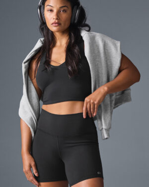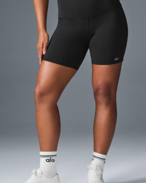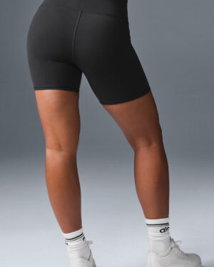 The biker is back and it??s better than ever. Meet the new ultimate short for practice and pavement: the 5?? High-Waist Biker Short, made in our signature lifting, sculpting Airbrush fabric, with a high waist, moisture-wicking technology and 4-way stretch that moves with you. Equal parts forward and functional in a new sport-ready 5?? inseam. Pair with a statement ALO bra tank or tee.