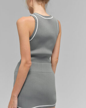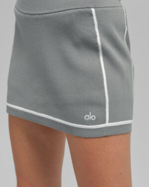Ribbed Sweater Knit Highline Mini Skirt – Lunar Grey/White
