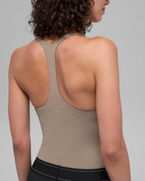 Literally the perfect layer ?? no VPL, tons of cool. The Sleek Back Bodysuit in sculpting Airbrush features a built-in shelf bra for light support, a T-back, scoop neckline and a thong backside for super-smooth layering under leggings.