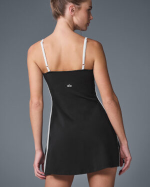 How cute is this dress? From the contrasting piping to the adorable A-line fit that swoops in at the waist and eases out through the hips, there??s nothing not to love. It’s practical, too, with built-in shorts (plus pockets) and a shelf bra with removable cups. And the Airbrush fabric is smoothing but not overly compressive??prime for working out or wearing out.