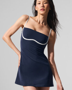 How cute is this dress? From the contrasting piping to the adorable A-line fit that swoops in at the waist and eases out through the hips, there??s nothing not to love. It’s practical, too, with built-in shorts (plus pockets) and a shelf bra with removable cups. And the Airbrush fabric is smoothing but not overly compressive??prime for working out or wearing out.