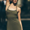 ALO Softsculpt Halter Tennis Dress – Green Olive/Black
