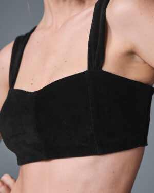 Soft and structured corduroy in a dreamy balconette fit. The Micro Corduroy Winter Break Bra is a thing of beauty, with removeable cups and non-adjustable shoulder straps for a super secure fit. This street-sweet bra hits right under the bust and layers well under a coverup.