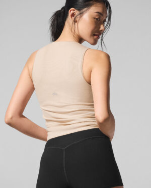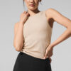 This tank is so en pointe. The ribbed fabric adds a subtle touch of texture, and the side cinching lets you customize the crop of the hemline. With a comfy, built-in shelf bra and a double-layered front, you can style it with everything from leggings to trousers.