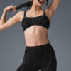 Meet your new favorite bra. It??s designed with thick straps, contrast seams, and a scooped neckline that seamlessly goes from barre class to coffee break. For the full fit, pair it with the Alosoft High-Waist Sunray Legging for an ultra-chic look.