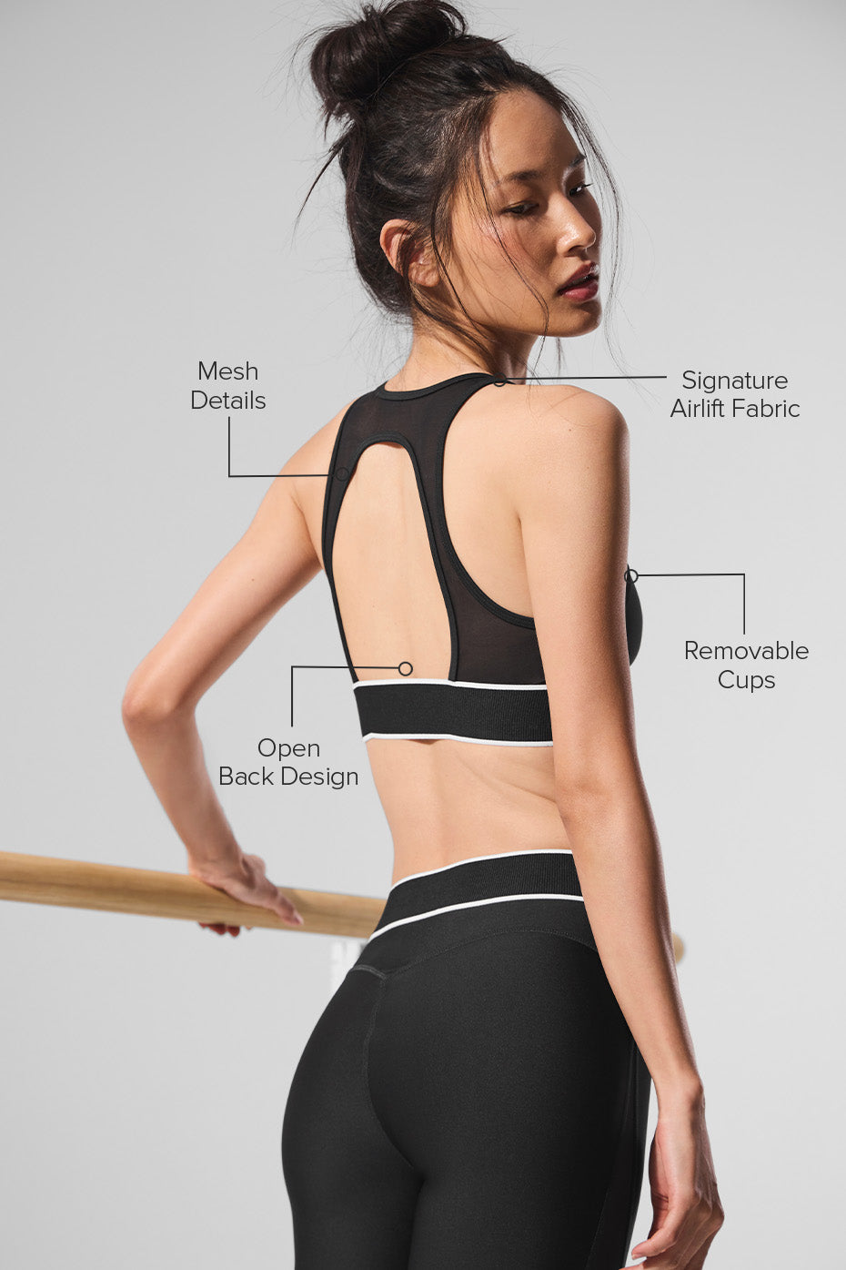 Bring an elevated energy to your everyday rotation. Designed in our signature Airlift fabric and featuring a sleek, contoured fit, the Airlift Mesh Darling Bra is as cute as its name and a must for your next workout. It features mesh straps and an open back for added breathability, along with a chic logo band. Pair it with the Airlift Mesh Darling Stirrup Legging for a look that sets you apart from the crowd at your next barre class.
