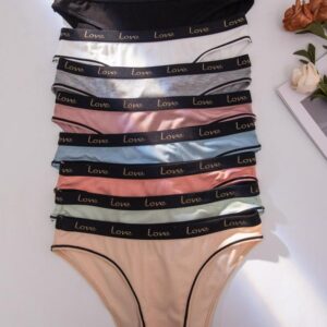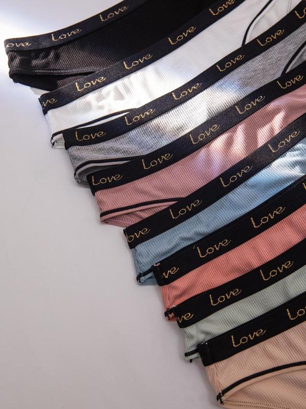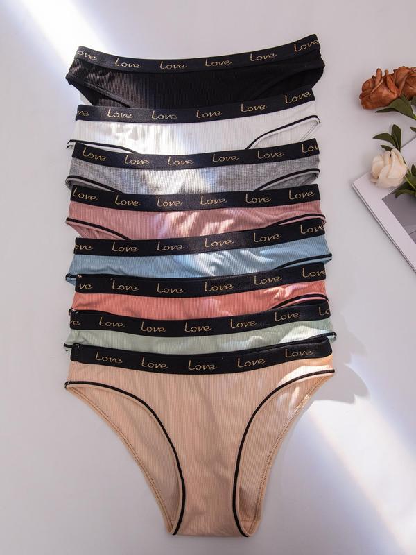 Women’s Letter Print Contrast Binding Panty, Regular Fit Lady Soft Comfy Pastel Breathable Knicker for Daily Wear, Women’s Comfort Underwear for Fall, Womenswear Panties