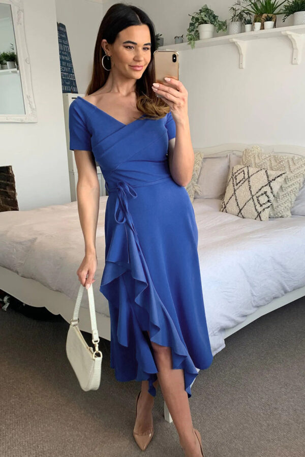 Women’s Boho Wrap V Neck Dresses Short Sleeve Ruffle Summer Midi Dress