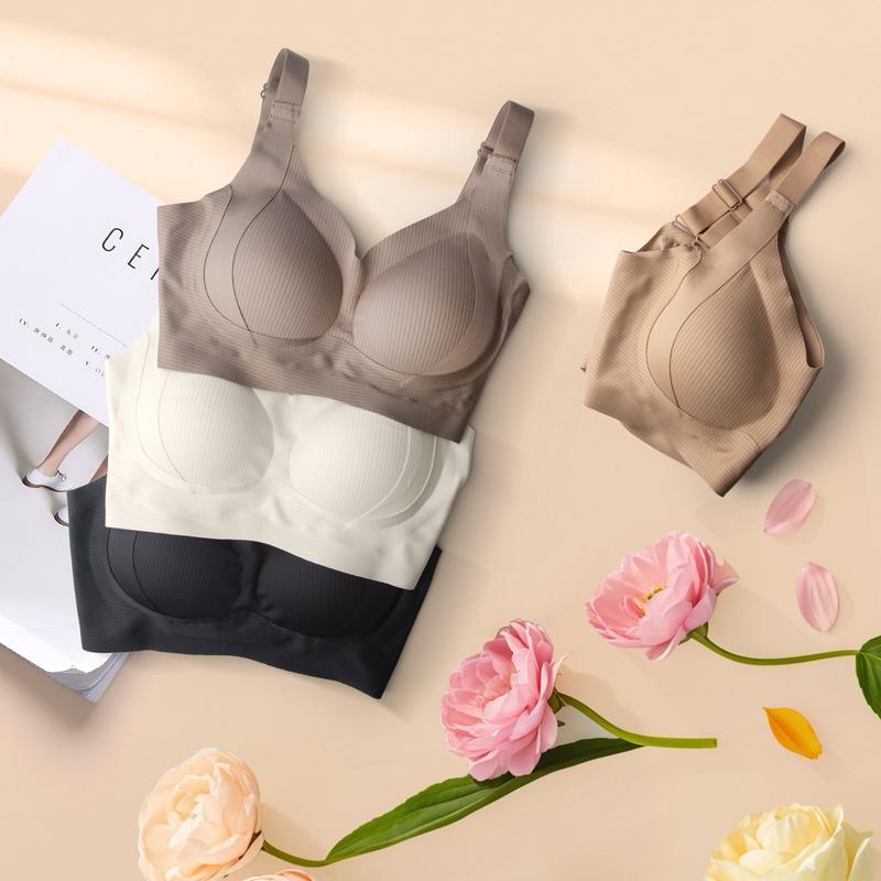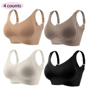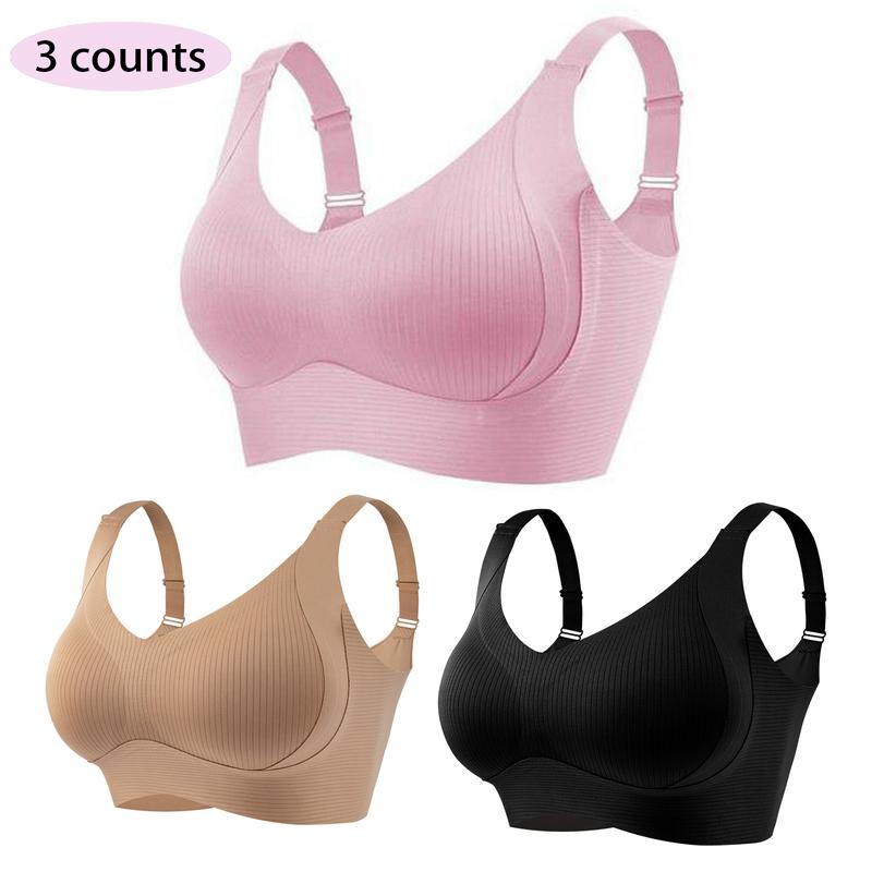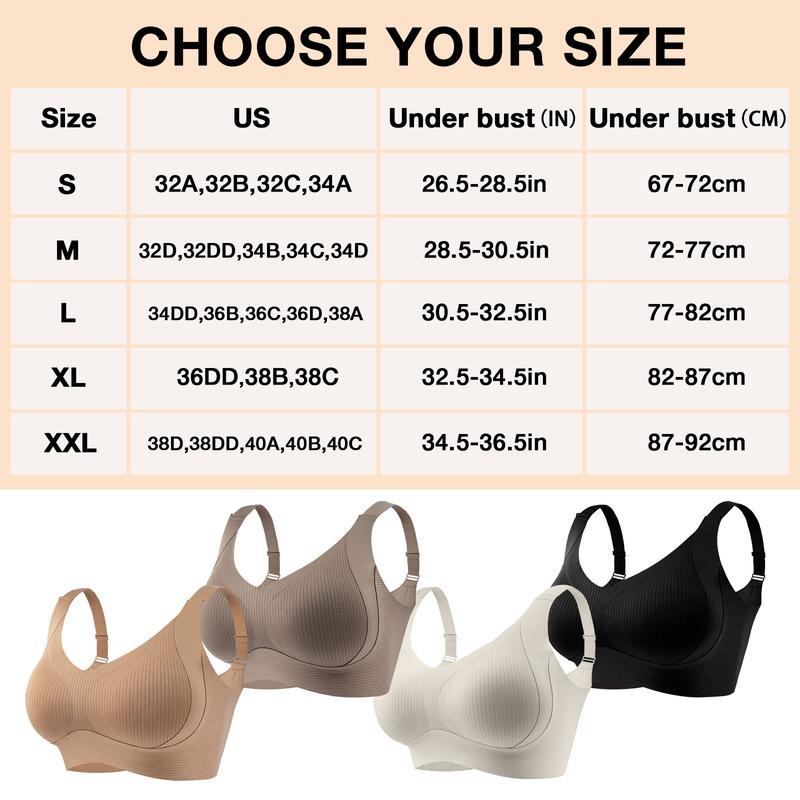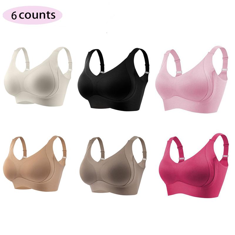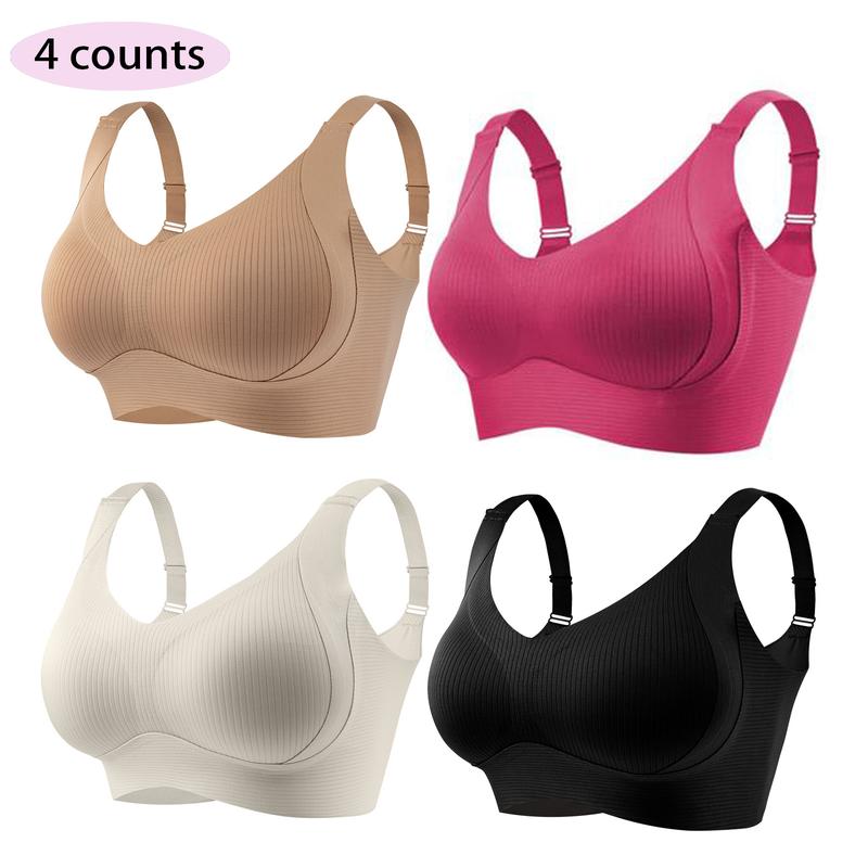 3/4/5 counts Women’s Solid Wireless Bra, Comfortable Breathable Push Up Bra, Softness Lightweight Lingerie for All Seasons, Womenswear Lingerie for All Seasons, girl,Soft Comfortable Breathable Ribbed Push Up Seamless Bra, gift,TikTokshopBlackFriday