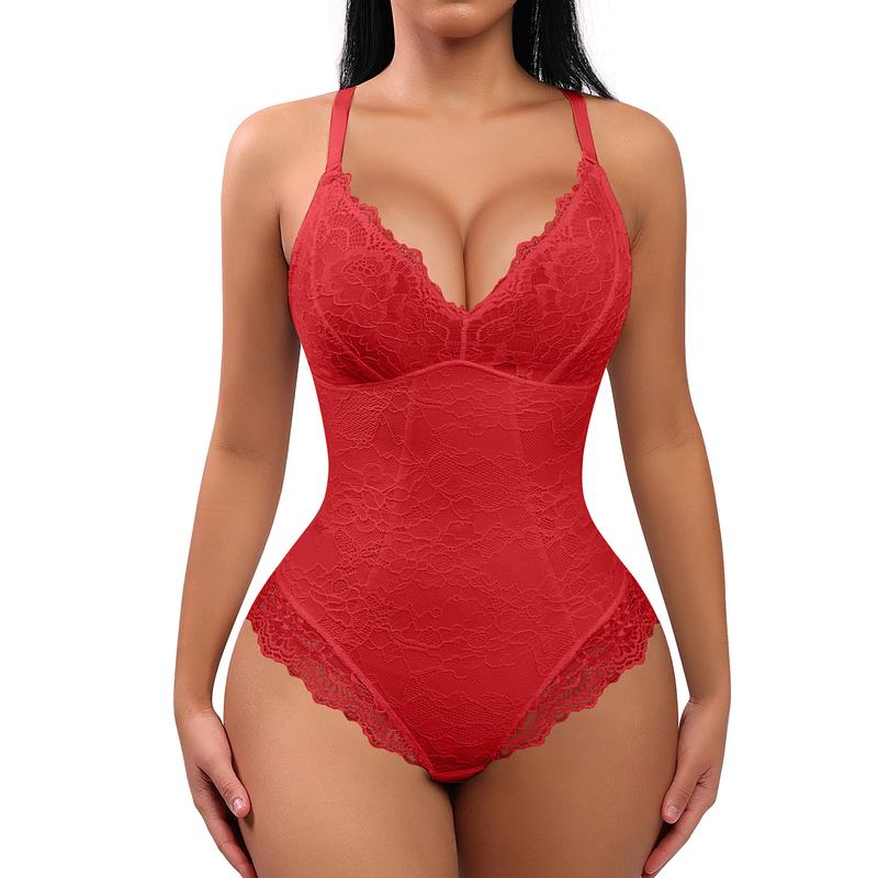 * No padded bra, little stretchy only.If larger bust ,pls size up, if over C cup, two size up.* Inside mesh designed for tummy and abdmen control.* Sexy lace designed for creating a sexy butt.* The panty bottom actually has hook & eye closures, similar to a bra, allowing you to adjust the length and ease of use when using the restroom.* Adjustable shoulder straps can be adjusted according to your own needs.* Side breast mesh designed for breast supporting and push-up effects.* V-neck designed for mammary line and sexy figure.