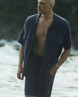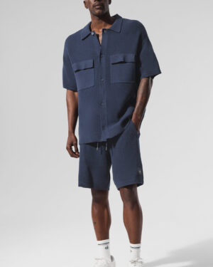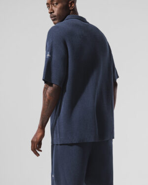 Sports Club Sweater Knit Short Sleeve Button Up – Navy
