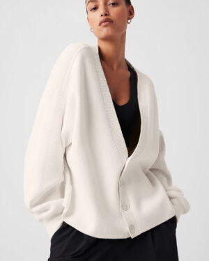 A classic piece you??ll wear constantly, the Scholar is knit from a soft, heavyweight cotton blend with just-right drape. It has an oversized fit, a four-button front, dropped shoulders and cozy ribbed cuffs. Wear it as a throw-on-and-go layer with your favorite workout sets, or style it with trousers and heeled boots for a dressed-up dinner date.