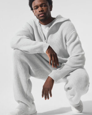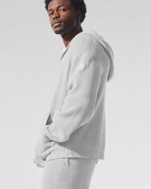 Domain Rib Knit Full Zip Sweater – Athletic Heather Grey