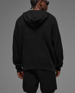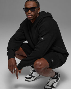 The Sports Club Sweater Knit Hoodie features a relaxed fit in a midweight, textured cotton knit with ribbed cuffs and a kangaroo pocket.