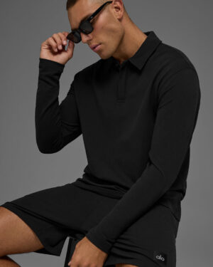 Double Take Long Sleeve Polo – Black