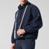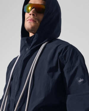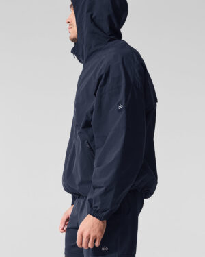 Light coverage and serious protection??that??s the Vantage Track Jacket. It has technical features like a structured hood, a full-zip front that covers the neck, cuffed sleeves, and a bungee hem that??s slightly longer in back. Fitwise, it feels cool and modern with dropped shoulders and a loose body. Wear it for running, training, or stepping outside in brisk weather.
