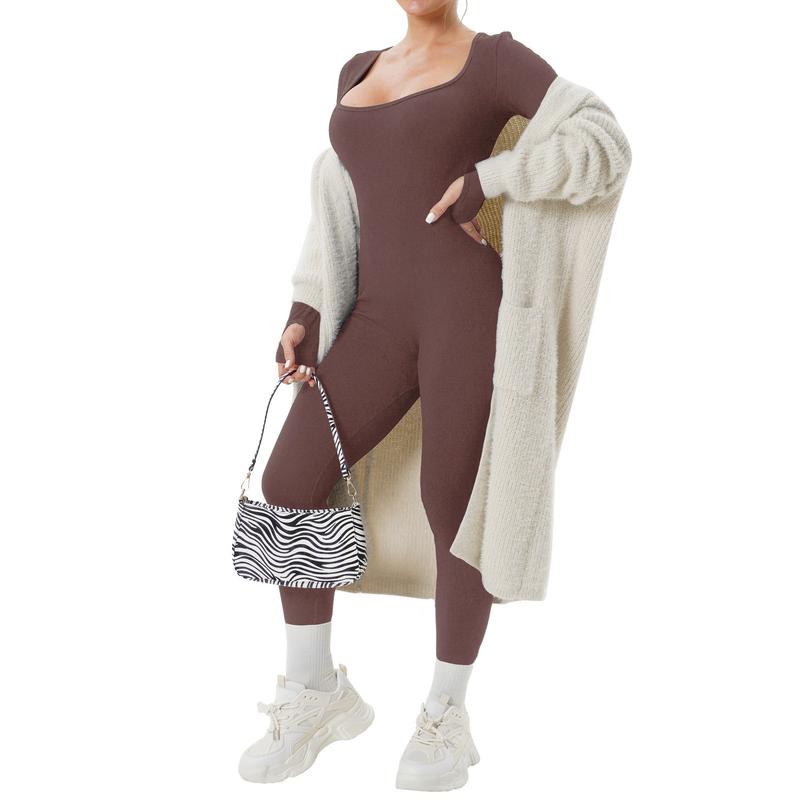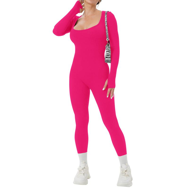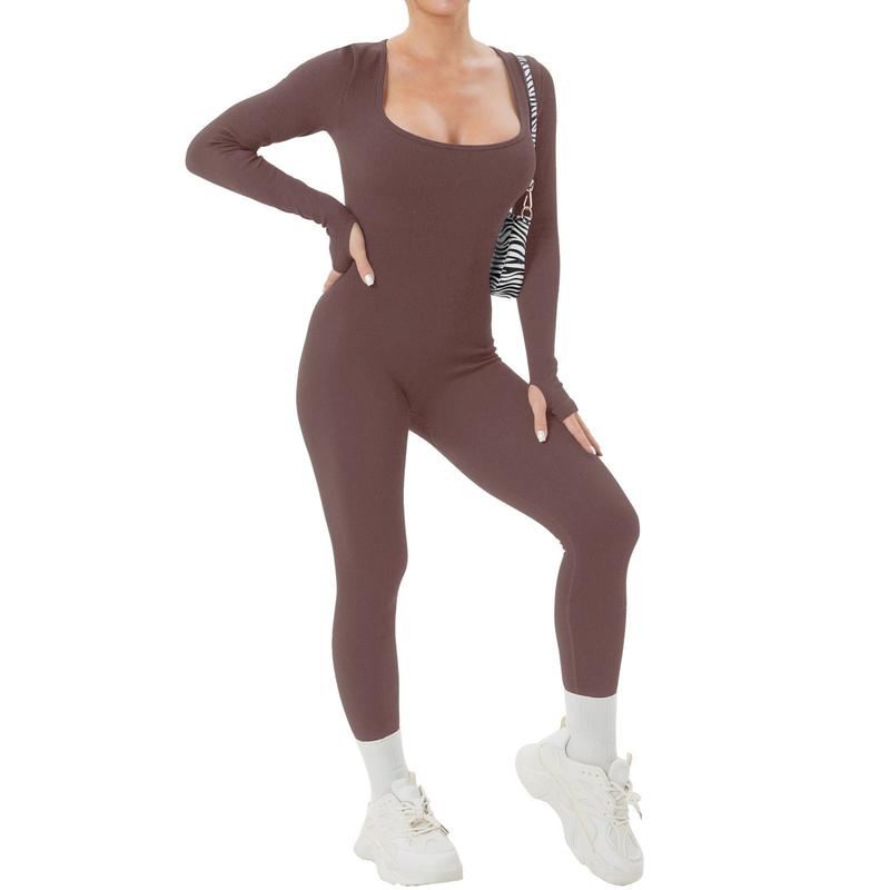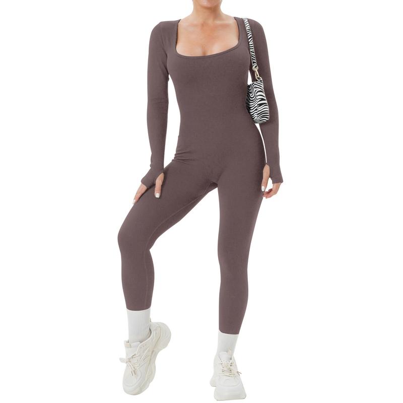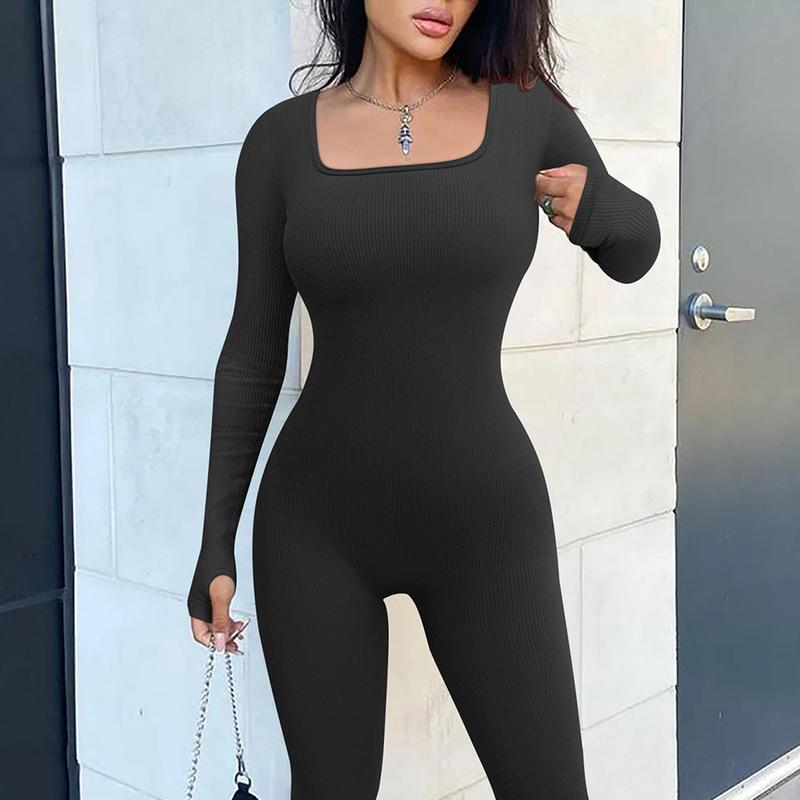 Features:Women’s Yoga Jumpsuit Square Neck Long Sleeve Solid Color Training Fitness Casual Dancing Pants
