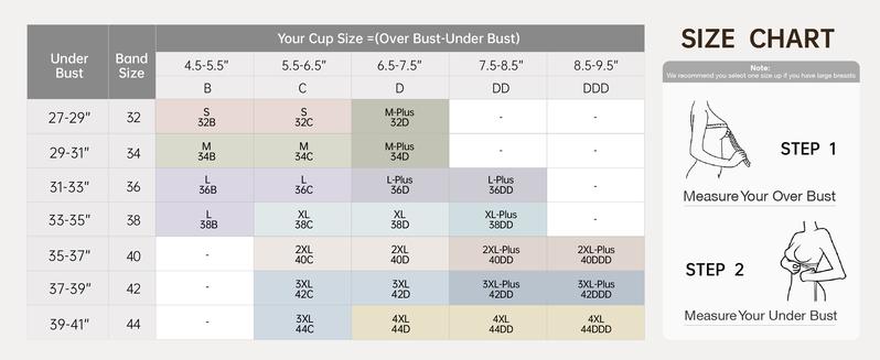 Sexy V Neck Bras for Women: The V-neck and V-shaped hem design enhance your confidence and style, making these comfort bras perfect for both younger and older women.Available in sizes S (32B,32C,34A), M (32D,34B,34C,36A), L (34D,36B,36C,38A), XL (36D,38B,38C,40A), 2XL (38D,40B,40C,42A), 3XL (40D,42B,42C,44A), and 4XL (42D,44B,44C).Our bralettes for women are designed to fit most body types