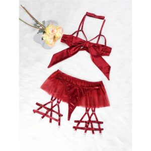 Silvina’s Day Women’s Red Silk Bow Sleepwear Set – Glamour Nightwear for New Year, Valentine’s Day, Birthday Gifts – Soft, Breathable, Minimalist Design – Comfortable Pajamas for Women Fabric Womenswear Suits Elegance