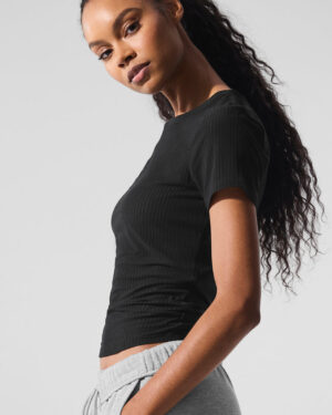 Cut to flatter, this classic crewneck has a body-skimming fit, short sleeves and a hip-grazing hem. Made from our new Sea Coast fabric that’s thin but not see-through, softly ribbed and perfectly stretchy, it??s the closet staple you can count on to finish almost any outfit.