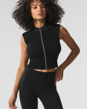 Denim Knit Sleeveless Full Zip Top – Black/Anthracite