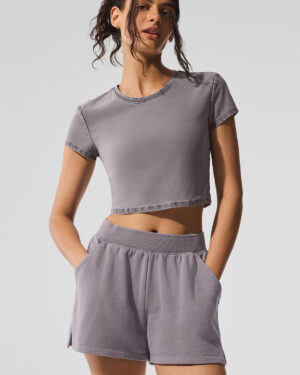Washed Alosoft Crop Finesse Short Sleeve – Cool Grey Wash