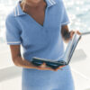 Tennis Club Sweater Knit Cropped Polo – Seashell Blue/White